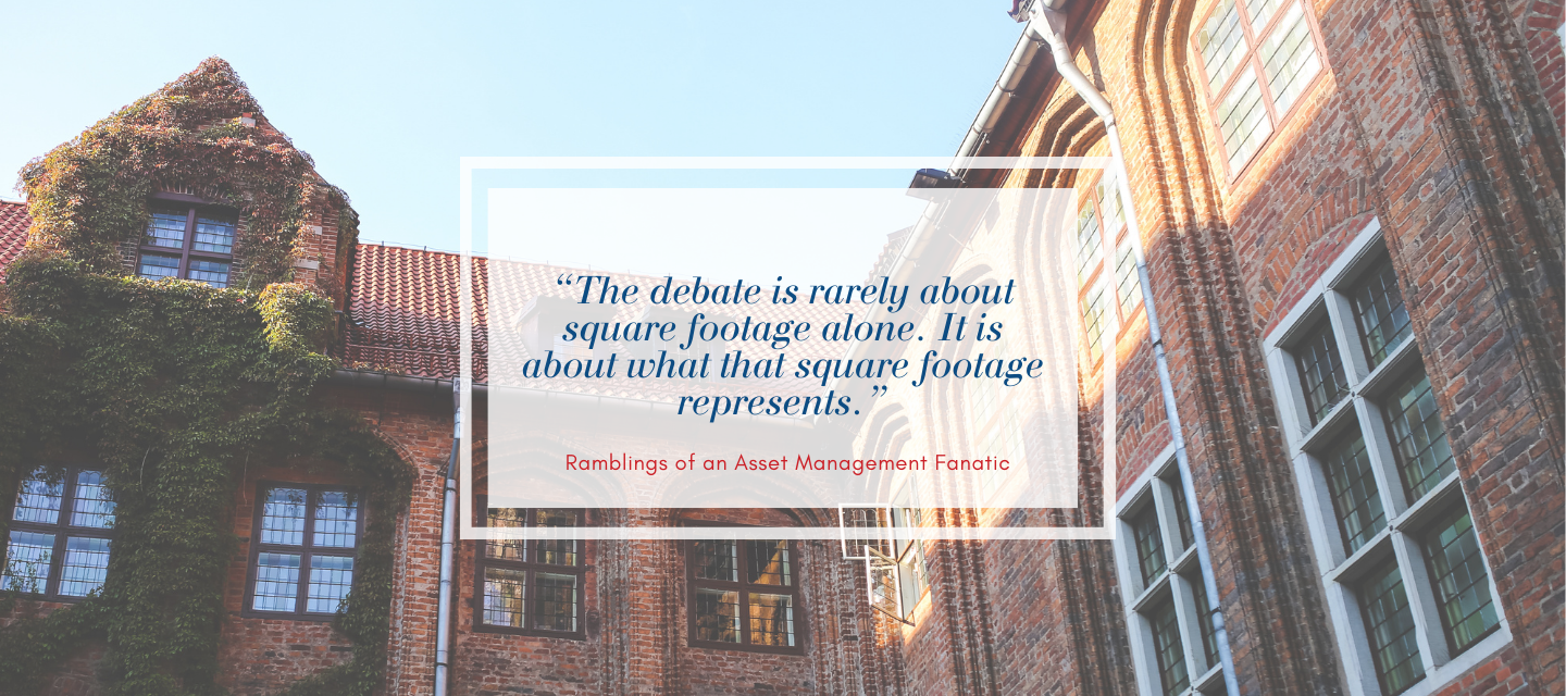 I remember speaking with a client of mine one time that did a space inventory of their campus and one professor was found to have six dedicated offices on the same campus. Apparently he taught in six different buildings and had managed to secure an office in each building. When confronted with the fact, the professor was let’s just say “highly resistant” to giving up any of the space. Although an extreme case, these are the types of challenges that higher education facility and asset manager can face in reducing their overall footprint.