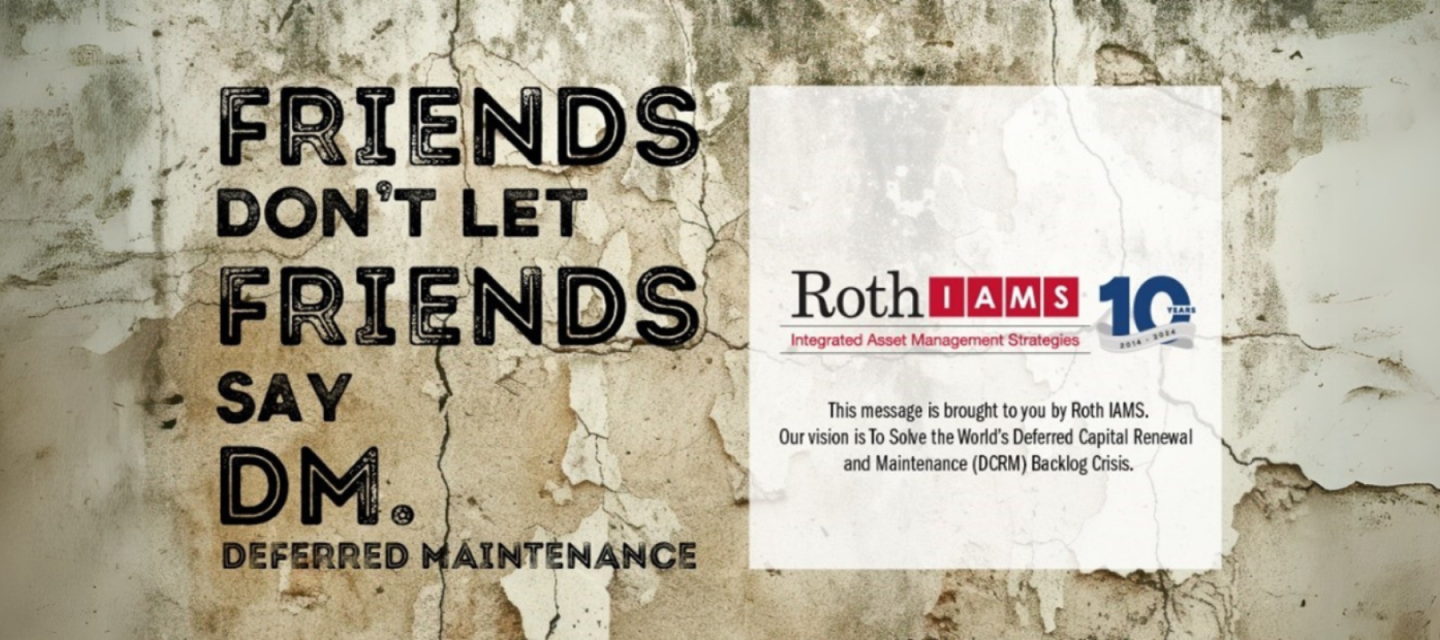 The terminology that we at Roth IAMS use instead is Deferred Capital Renewal and Maintenance (DCRM). As I have explained before, most of what has been called DM in the past is actually capital renewal. However, although a much smaller part of the problem, maintenance issues are also often included. Additionally, many organizations have different definitions of maintenance. This is why we have chosen not to throw the baby (the term maintenance) out with the bath water (the term DM) and use DCRM, which expands the definition, without losing the maintenance element.